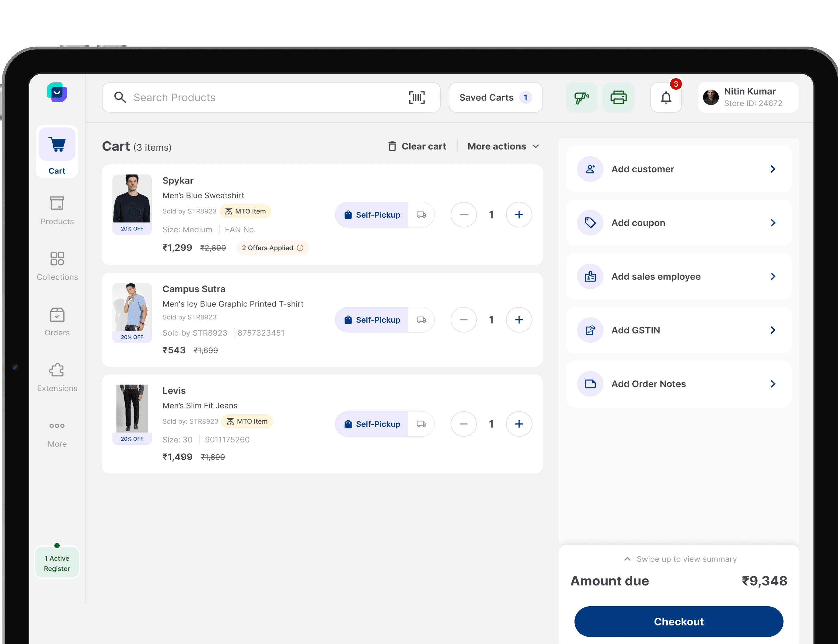 One of many retail products I built at Fynd. The details are confidential, but 120+ brands and a 1m 22s average checkout tell part of the story.